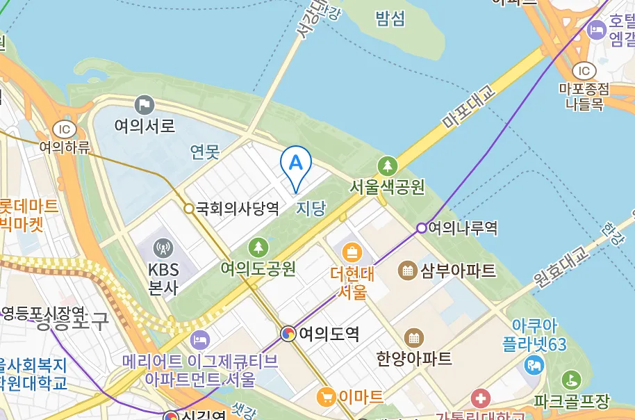 ▷스타벅스 여의도 공원 R점 위치 : 서울 영등포구 여의공원로 101 (우) 07241 지번여의도동 12