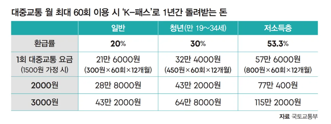 K-패스교통카드로 대중교통을 이용하면 월 최대 60회